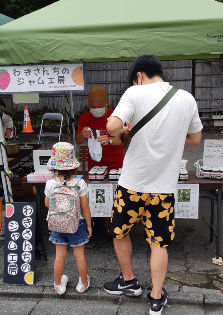 お盆中とあって地元の方よりもお子様連れの観光客が目立ちました。お散歩市には間に合いませんでしたがわきさんちのジャム工房では「いちじくジャム」の発売を準備しています。お楽しみに。