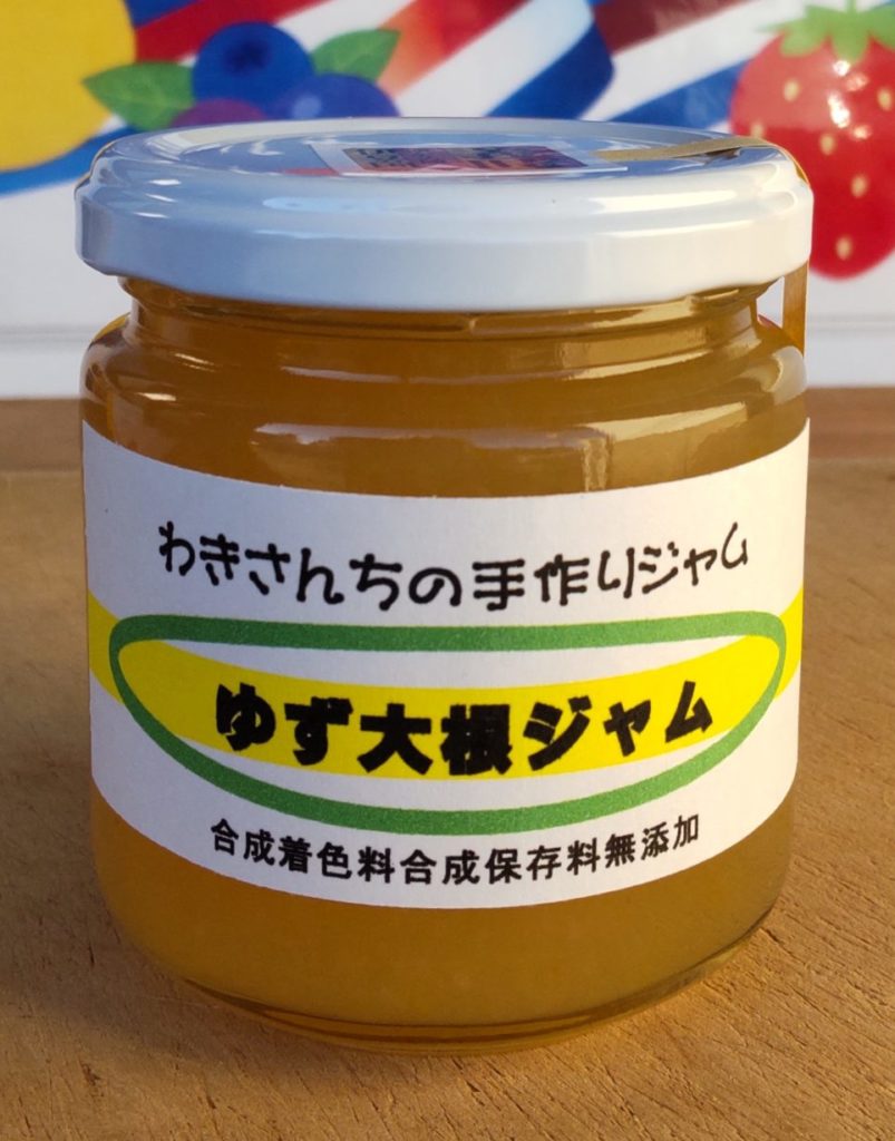 伊豆の国市の田中山地区は夏はスイカ、冬はタクアンの産地として有名です。その田中山の青首大根をゆず風味のジャムにしました。辛みはなくあっさりとした和風のジャムに仕上がりました。