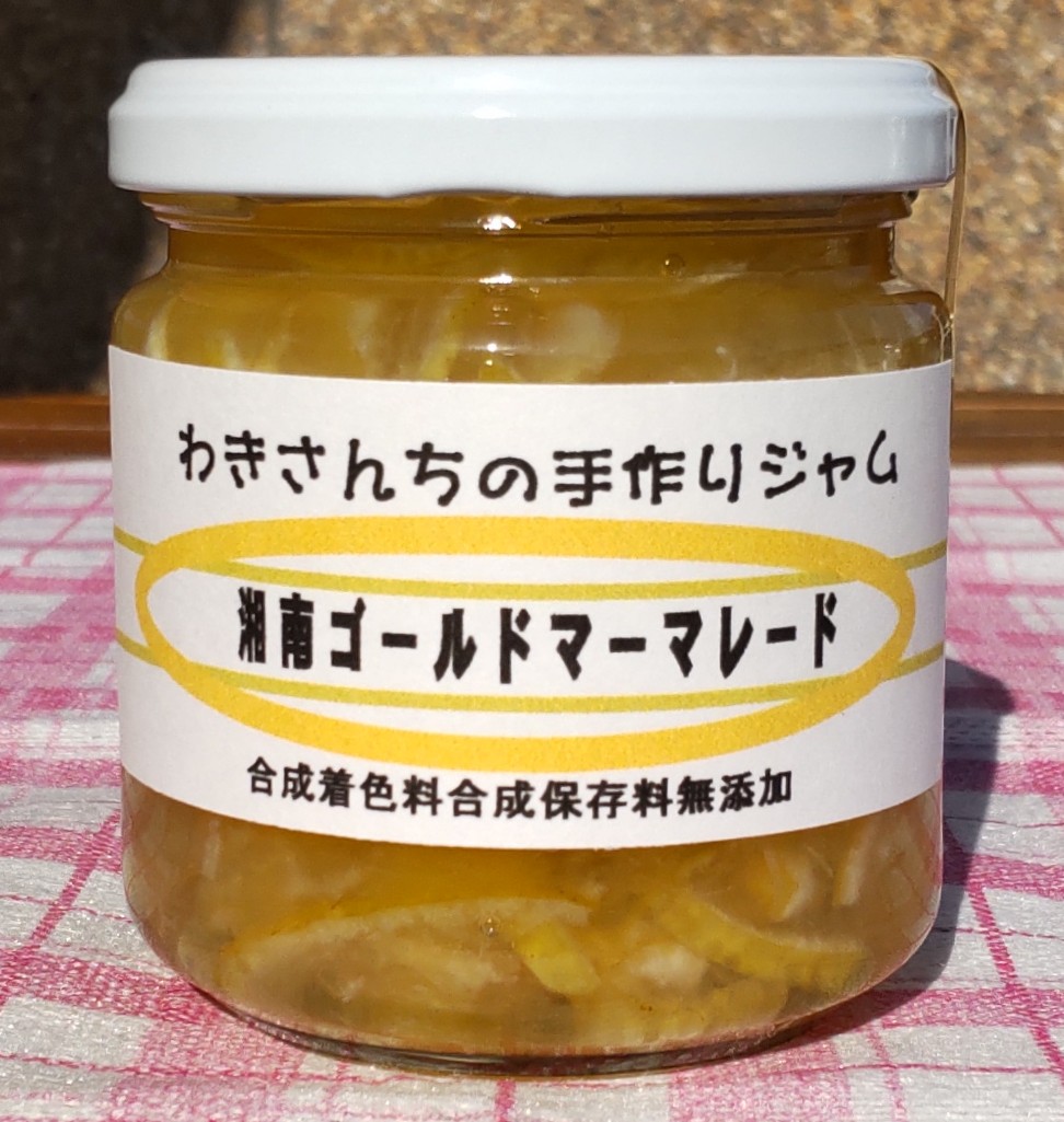 「湘南ゴールドマーマレード」を発売します。湘南ゴールドは神奈川県特産の柑橘類で黄金柑と温州みかんの交配で作られました。良い香りと甘さが特徴です。マーマレードにすると苦みが少なくすっきりした特徴を生かすことができました。数量に限りがあるのでお早めにお求めください。